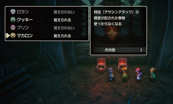 「○○(呪文や特技名)の巻物」という名称になっており、キャラクターを選んで使用することでその呪文や特技を習得します。