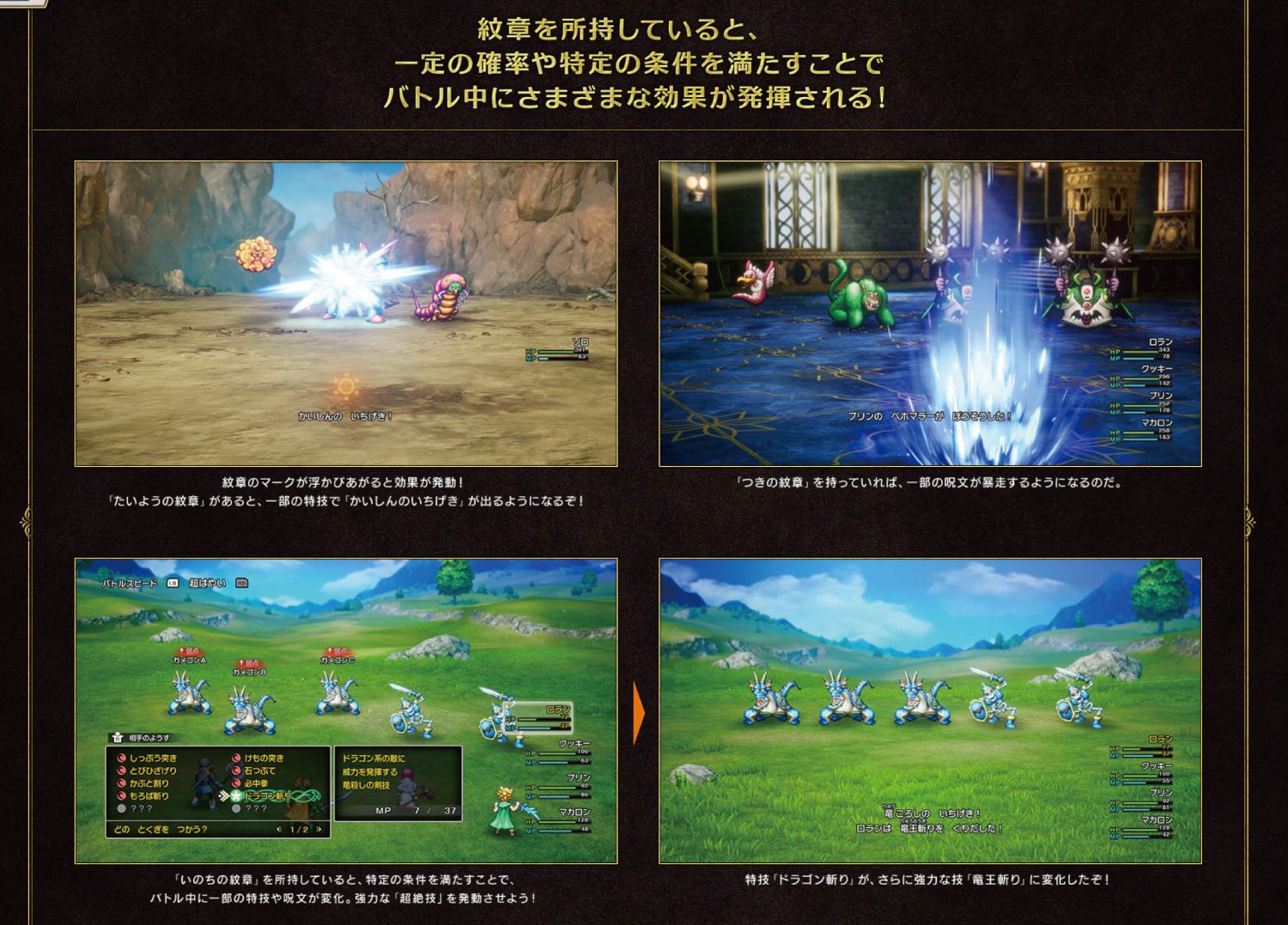 今回はこの紋章がドラクエ1にも追加され、「戦闘中に何らかの効果を発揮する」性質のあるという実用性のあるものになっています。