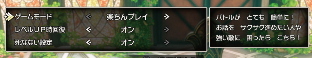 「レベルアップ時のHP/MP回復」はデフォルトではオフになっていますが、オンにすることもできます。