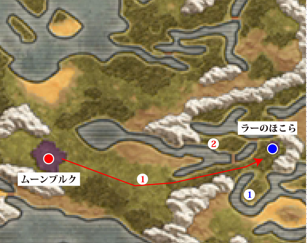 - 中庭のイベント後、ムーンブルクから東のラーのほこらへ。