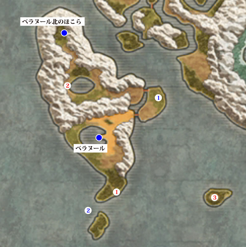 | - | ベラヌール北のほこら | 命の石(いかつい男がいる付近のオブジェの前の地面) | |