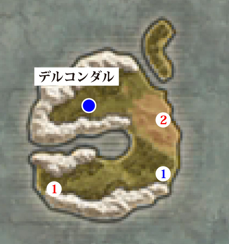 - 次はデルコンダルへ。炎のほこらから北上した位置。