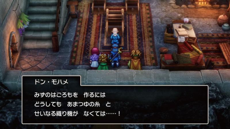 「あまつゆの糸」はテパを訪問することになるよりずっと前に入手できますが、「せいなる織り機」を入手のためにはさいごのかぎが必要で、さいごのかぎを入手できるのはゲームクリア直前のタイミングです。