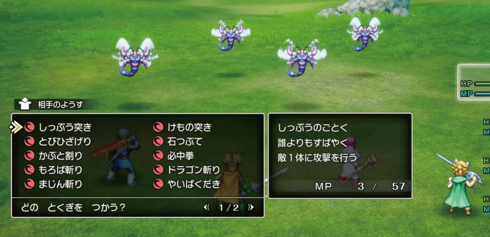 しっぷう突き | 必ずターンの最初に攻撃できるが通常攻撃より威力は低い |
