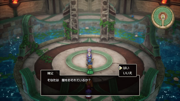世界北東の孤島にある場所。 「闇を恐れているか?」と聞いてくる神父と、人間に友好的なスライムがいます。 特にイベントなどはなく、2つのステータスアップのたねを回収できるのみです。