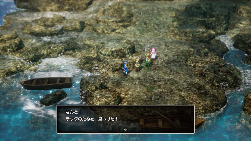 ムーンペタの西側の海域は岩礁で塞がれているが、ムーンペタにルーラで移動すると船が海域に移動するので船入手直後から探索可。