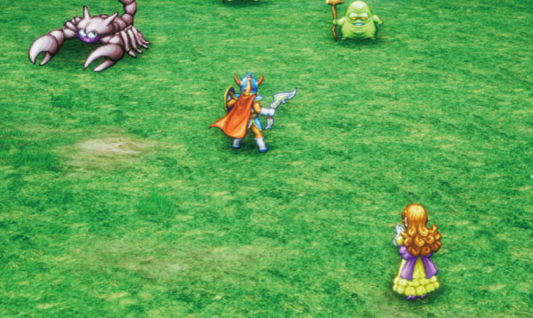 ローラ姫を連れて冒険している場合、戦闘画面で常に勇者の後方にいます。