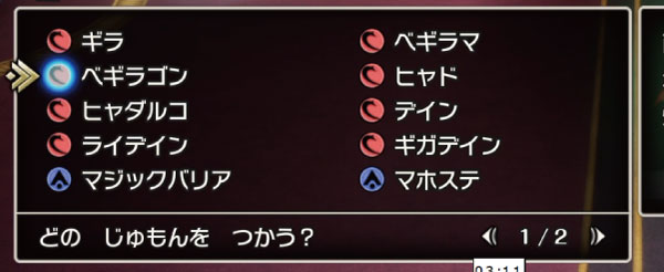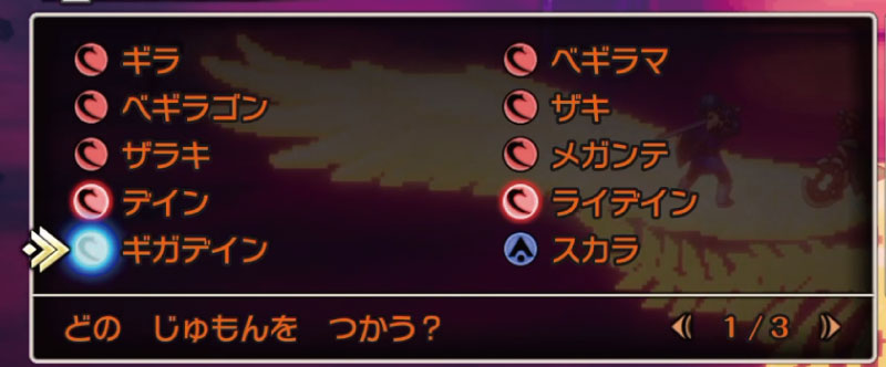 2つあり、「ベギラゴン」なら「炎の鳥(正式名称不明)」が発動。「ギガスラッシュ」なら「ギガブレイク」が発動します。