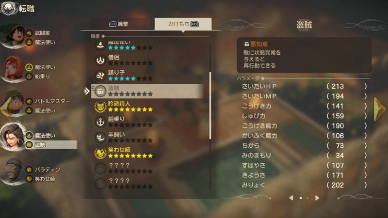 職業はそれぞれ「職業とくせい」という特殊能力を持っています。