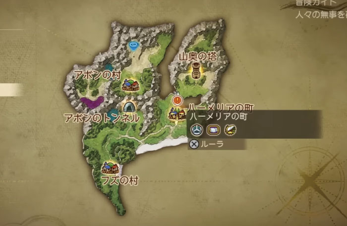 メニューから呪文を使う方法だけでなく、マップを出し、そこを調べることで瞬間移動呪文の「ルーラ」が可能になっています。