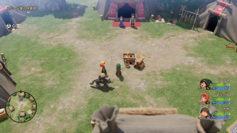 建物はテントで構成されていますが、ストーリーを進めてユバール族が旅立った場合はテントも無くなり住民もいなくなって「山間の道」という何もない場所に変化します。