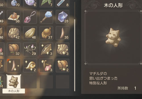 ウッドパルナ編でマチルダから「木の人形」というものを入手できます。