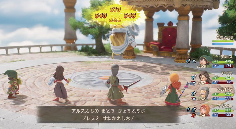 場合によってはアイラも「きょうふう」を使ったり、メルビンが「ベホマラ―」を使うなどして臨機応変に対応しましょう。