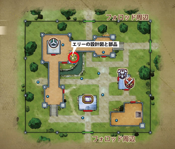 - エリーの設計図と部品は「水路のそばのタルの下」に埋めたという話を聞けます。