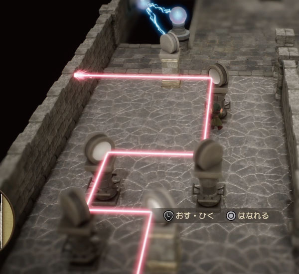 画像の状態から左の一番奥の鏡を奥に押していくと右の水晶を破壊できます。